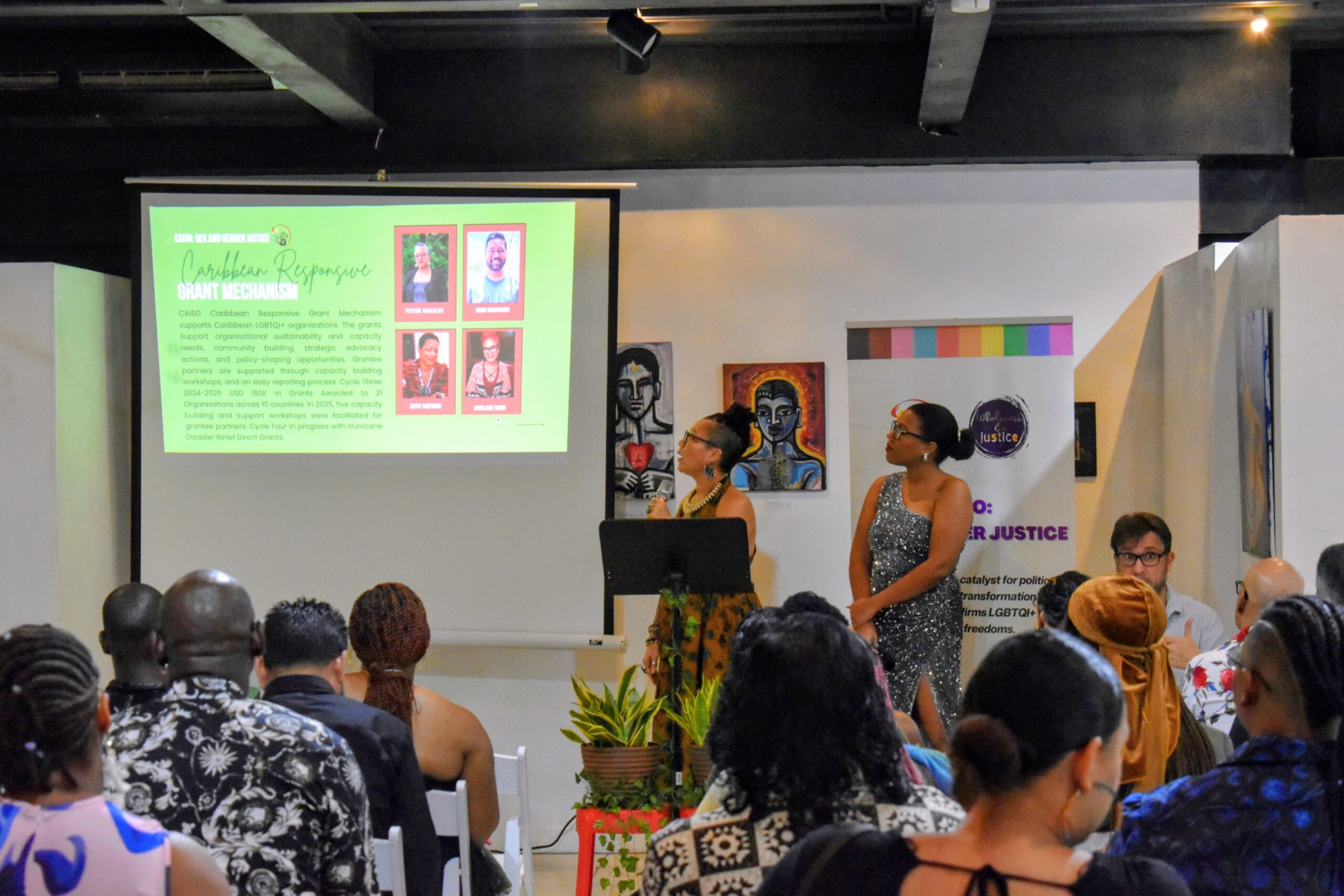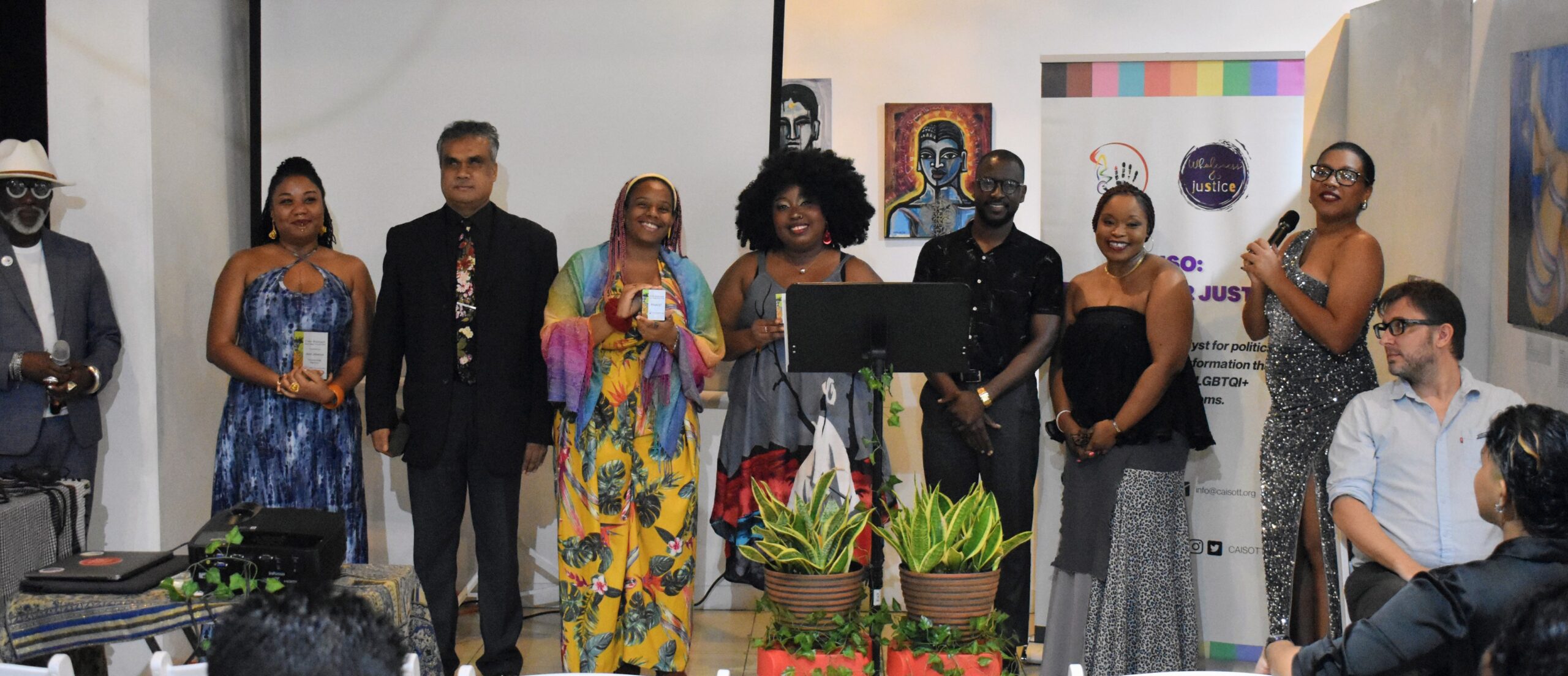 The event also launched CAISO’s 4th Annual LGBTQI+ Art Exhibition, featuring the work of 17 emerging and established artists. These artists and their work reveal how we build community, envision care, and connect across differences, generations, and identities. The six-day public exhibition was held at ThinkArtWorkStudio on Cipriani Boulevard from December 07-12th.
