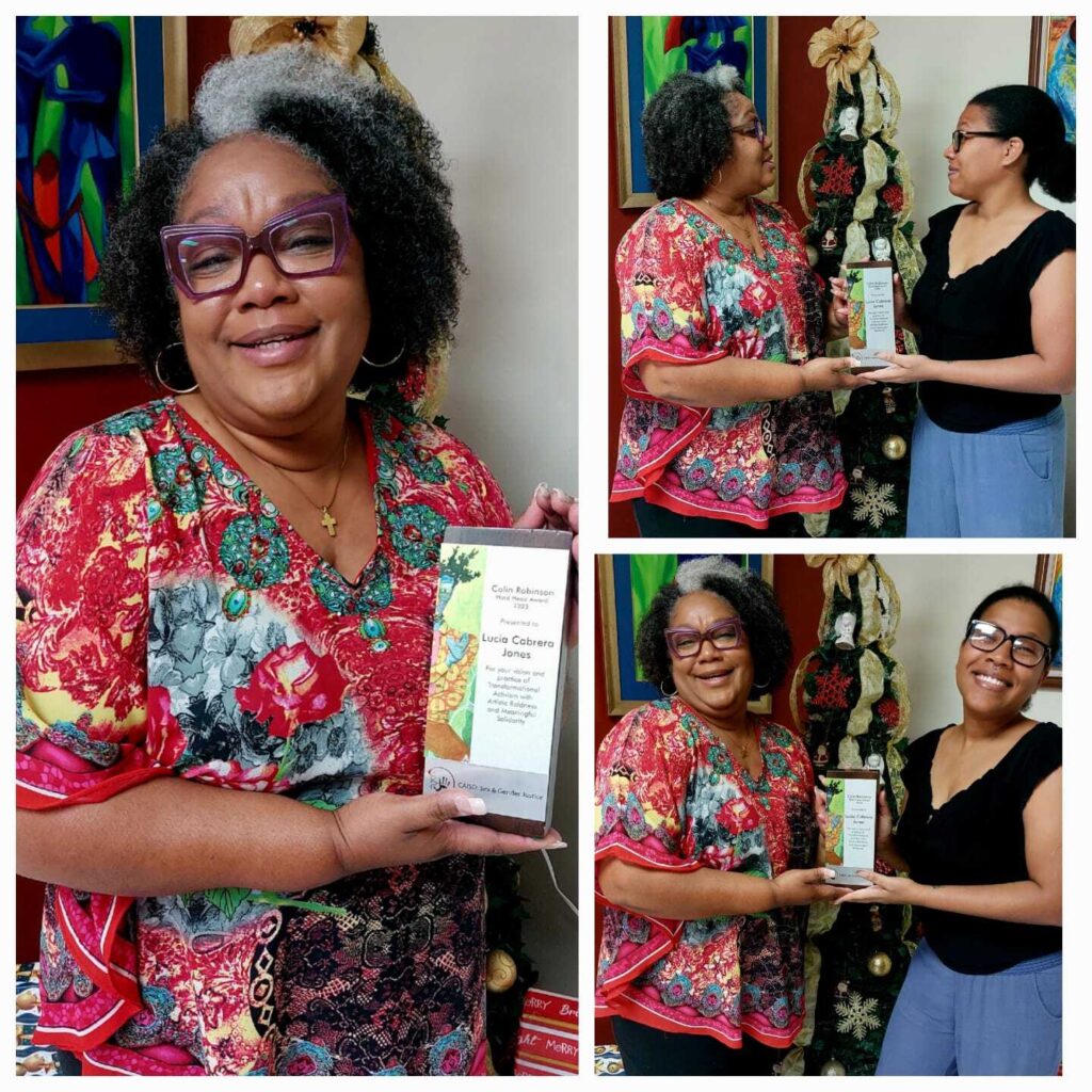 Organised by CAISO: Sex and Gender Justice in memory of its late co-founder and Director of Imagination, Colin Robinson, who died after a short battle with cancer in 2022, the event celebrated the work of four other Finalists: Avah Atherton (community archivist and cultural heritage activist), Princess Avianne Charles (climate justice advocate and workers’ rights activist); Jade Trim (feminist activist); and Kenneth Suratt (disability rights activist). Atherton and Suratt were singled out for honourable mention by the Judges.